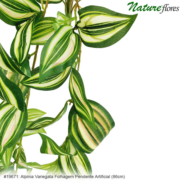 Alpinia Variegata Folhagem Pendente Artificial (86cm), tem folhas pequenas com coloração variegata. Assim, os formatos das folhas são lindo, simples e delicado.