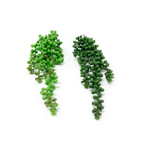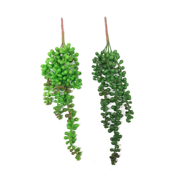 Planta artificial conhecida popularmente como Colar de Pérolas ou Pérola-verde. Muito utilizada como planta pendente em vasos ou jardim verticais de suculentas.