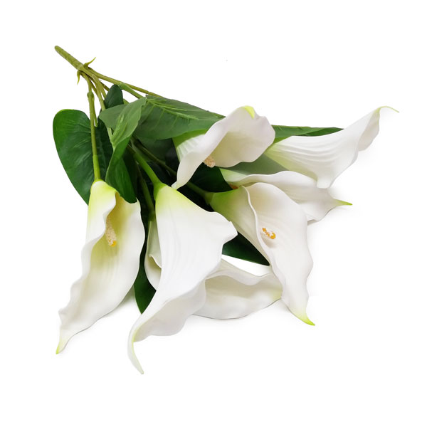 Copo de Leite Buquê Floral Artificial (Zantedeschia aethiopica) também conhecida como Cala-branca, Jarra, Jarro e Lírio-do-nilo. Assim, suas flores são firmes e grandes. Adicionalmente, o copo de leite é conhecido por transmitir tranquilidade e paz ao ambiente, por isso muito usado em casamentos por ser imponente, elegante e delicada. Contudo, essa flor artificial é realística ao toque e tem uma aparência natural. No entanto, o Copo de Leite Buquê Floral Artificial não precisa de cuidados especiais como iluminação, adubo, poda e água. Por fim, uma alternativa prática e moderna para decorar ambientes sem preocupação com a manutenção.