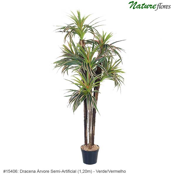 Dracena Árvore Semi-Artificial – Verde/Vermelho ou Dracaena fragans, também conhecida como planta pau d’água, coqueiro de vênus ou simplesmente como dracena. Assim, sua forma é colunar e suas folhas tem textura lisa, longas, largas e recurvas. Logo, a Dracena Árvore Semi-Artificial é muito utilizada em projetos de áreas comuns de condomínios em vasos, na entrada de prédios. Afinal, muito utilizada na decoração de ambientes internos por seu lindo formato com folhas interessante e tronco natural desidratado. Use Pedra Ornamental ou Casca de Pinus para fazer o acabamento da decoração do vaso ou jardim Por fim, uma alternativa prática e livre de manutenção para decorar ambientes sem preocupação.