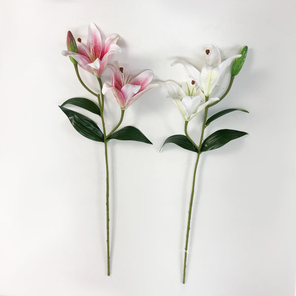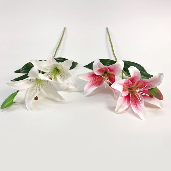 Galho de Lírio Artificial em Silicone com 2 Flores (65cm)