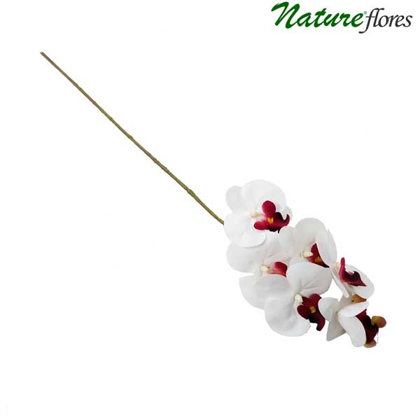 Phalaenopsis Branco/Vinho Galho Floral Artificial 6F (70cm)
