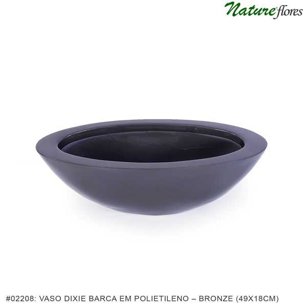 #02208: Vaso Dixie Barca em Polietileno – Bronze (49x20x18cm)